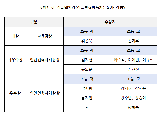 제22회 2020 인천건축문화제 조직위원회(위원장 전호열)는 2020년 9월 12일 제21회 건축백일장 심사 결과를 발표하였다.