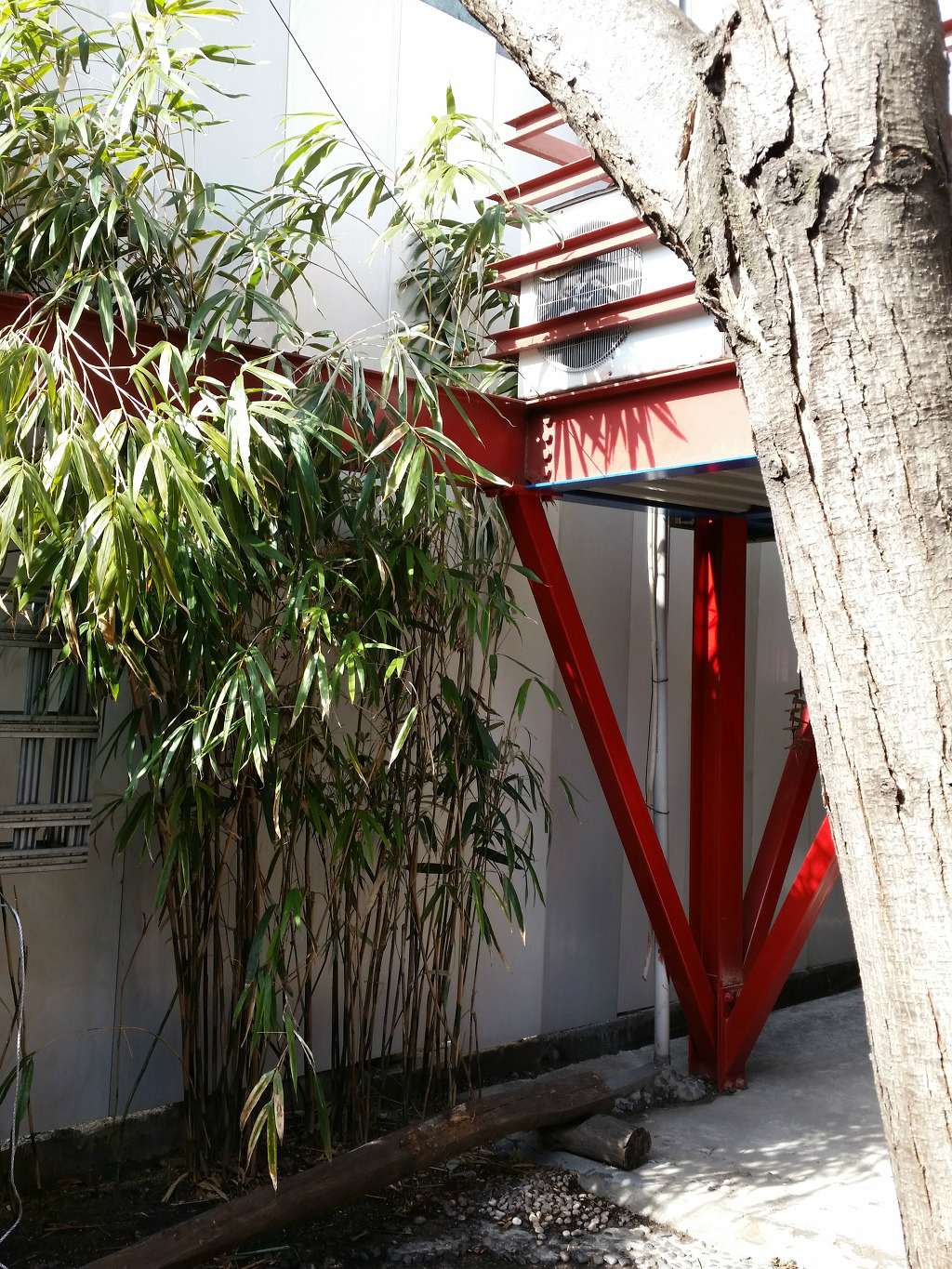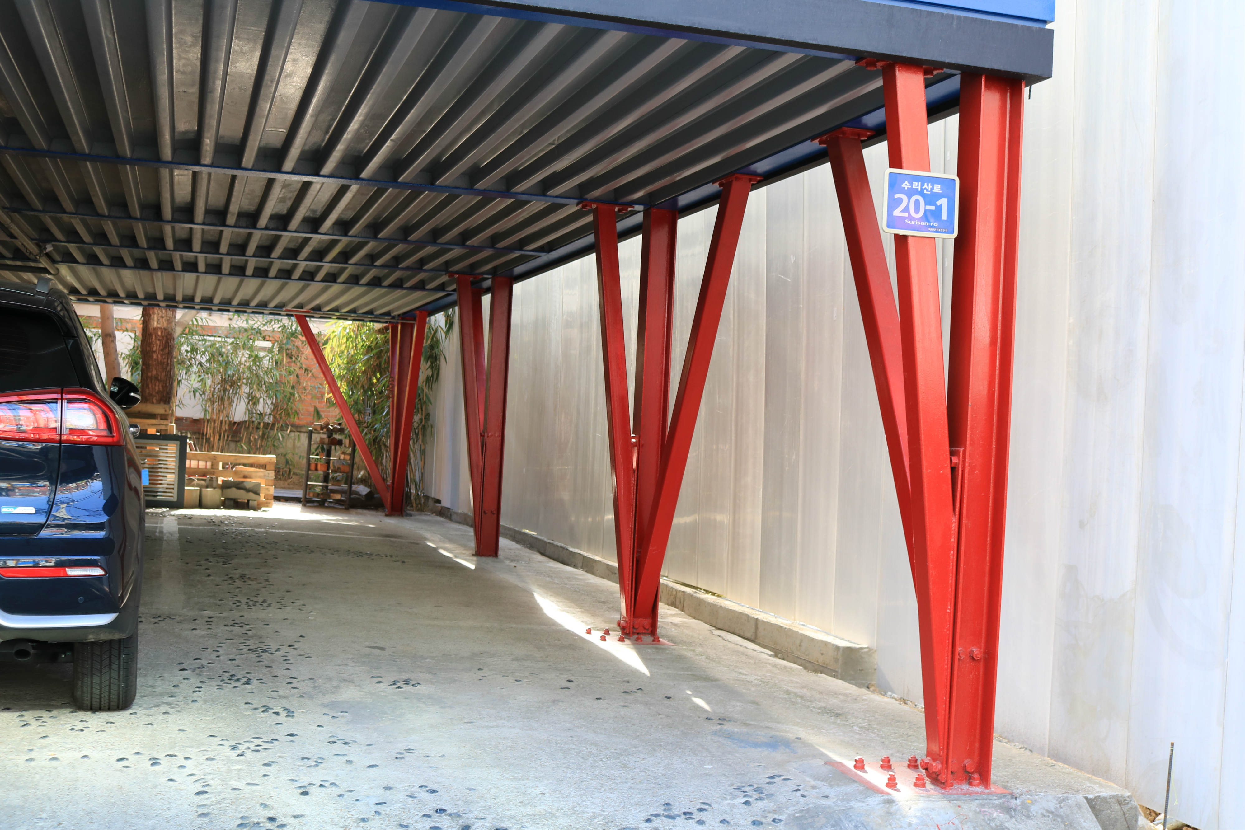 우리집 정원은 작은 정원이다. 작지만 큰나무를 키운다. 단층 자동차정비소를 지어 임대할때 지붕을 뚤어 가죽나무를 살려, 나무를 잘 키우면 사업이 잘되니 잘키우라고 하였다. 10여년 그렇케 키우다 집과 사무실을 지을때 가죽나무 정원을 꾸미게 되었다. 나무가 베란다에 다아 난간을 자르고 키우고 있다.