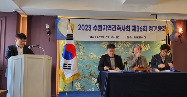 수원지역건축사회는 지난 3월 10일 금요일 오전 10시 30분 수원 라메르아이에서 수원지역건축사회 제36회 정기총회 및 수원지역건축사복지회 제16회 정기총회를 가졌다.