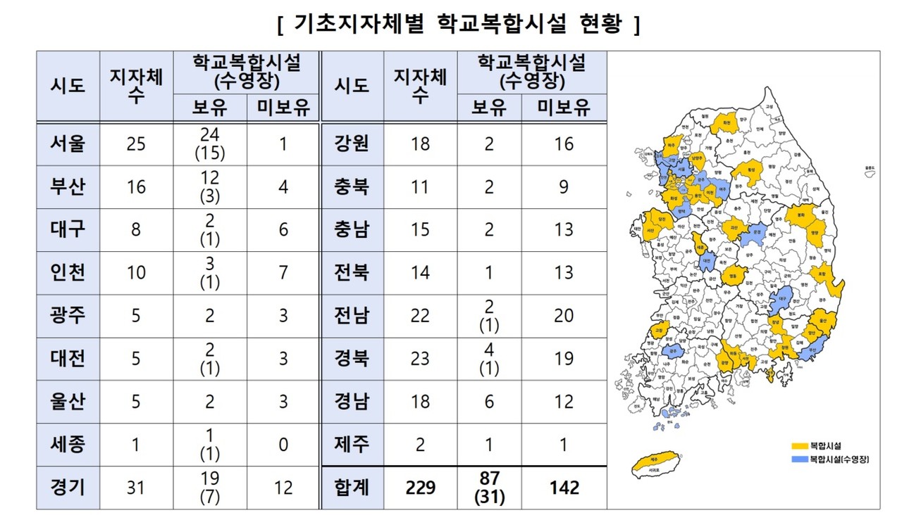 - 229개 모든 기초지자체 단위에서 학교복합시설이 운영되도록 설치 지원