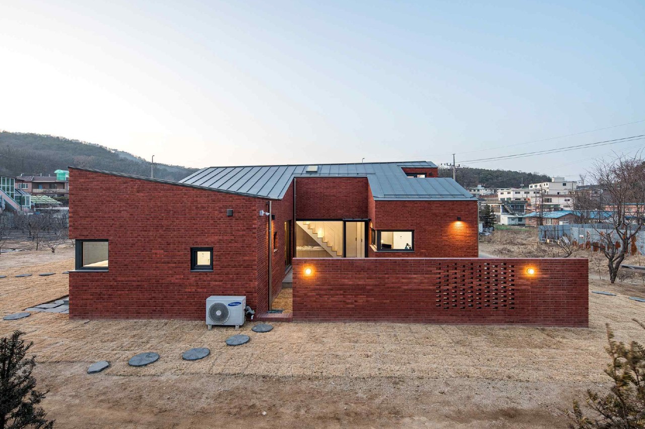 평면은 중정을 가진 정방형의 틀에서 시작했다. 어느 한쪽으로 일방적인 방향 설정을 하기보다 오히려 주변환경으로 중립적인 자세를 취했다. 방향성을 가지고 채우고 덧붙이는 방식보다는 설정된 틀안에서 비워내고, 유입시키는 방식으로 안과 밖의 관계를 설정했다. 그로인해 중정은 집의 볼륨과 벽이 만들어내는 집 안의 공간이지만, 오히려 집 주변 환경으로 느슨하게 열려있는 완충 공간이 되었다. 벽은 건물과 하나의 재료로 확장되어 내밀한 영역을 만들고, 외부로부터의 불편한 시선축을 회피할 뿐 닫혀 있지 않다. 통합된 거실과 주방은 부부 내외가 대부분의 시간을 보내는 주요 공간이다. 특히 주방은 이 집에서 차지하는 의미가 크다. 널찍한 다용도실은 주방의 기능을 보조해주고, 벽과 천장을 목재로 마감한 다용도 식당은 주방에서 만들어진 맛있는 식사를 즐길 수 있을 뿐만 아니라 손님을 위한 작은 게스트룸으로도 활용 가능하다. 거실은 서쪽 텃밭으로 열린 조망을 가지면서 동시에 중정으로 열려 있어 마치 한옥의 대청을 닮았다.