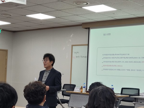이날 실시된 교육은 건축물관리점검기관이 갖추어야할 요건과 점검항목 및 타임라인에 따른 점검요령 등 실무에서 꼭 필요한 사항들에 대해 상세히 다루었다.