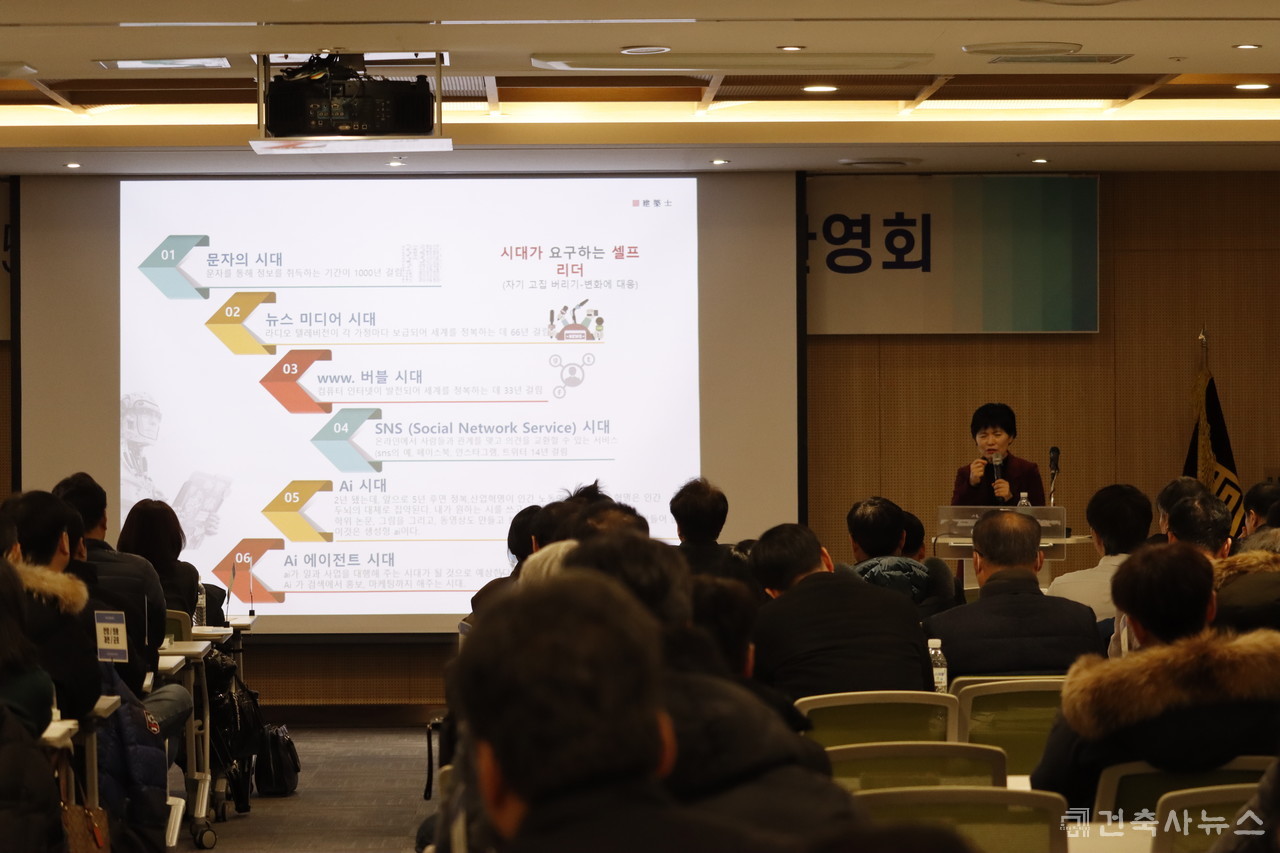 환영회에 앞서 황정복 역대회장의 [위기의 건축사, 대응하는 건축사]라는 주제로 강연을 진행, 시대가 요구하는 셀프리더가 될 것과 은퇴시기를 정해두고 짜임새 있는 계획을 세워볼 것을 조언했다.