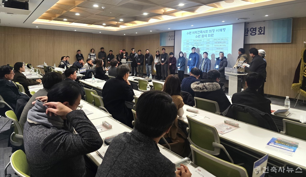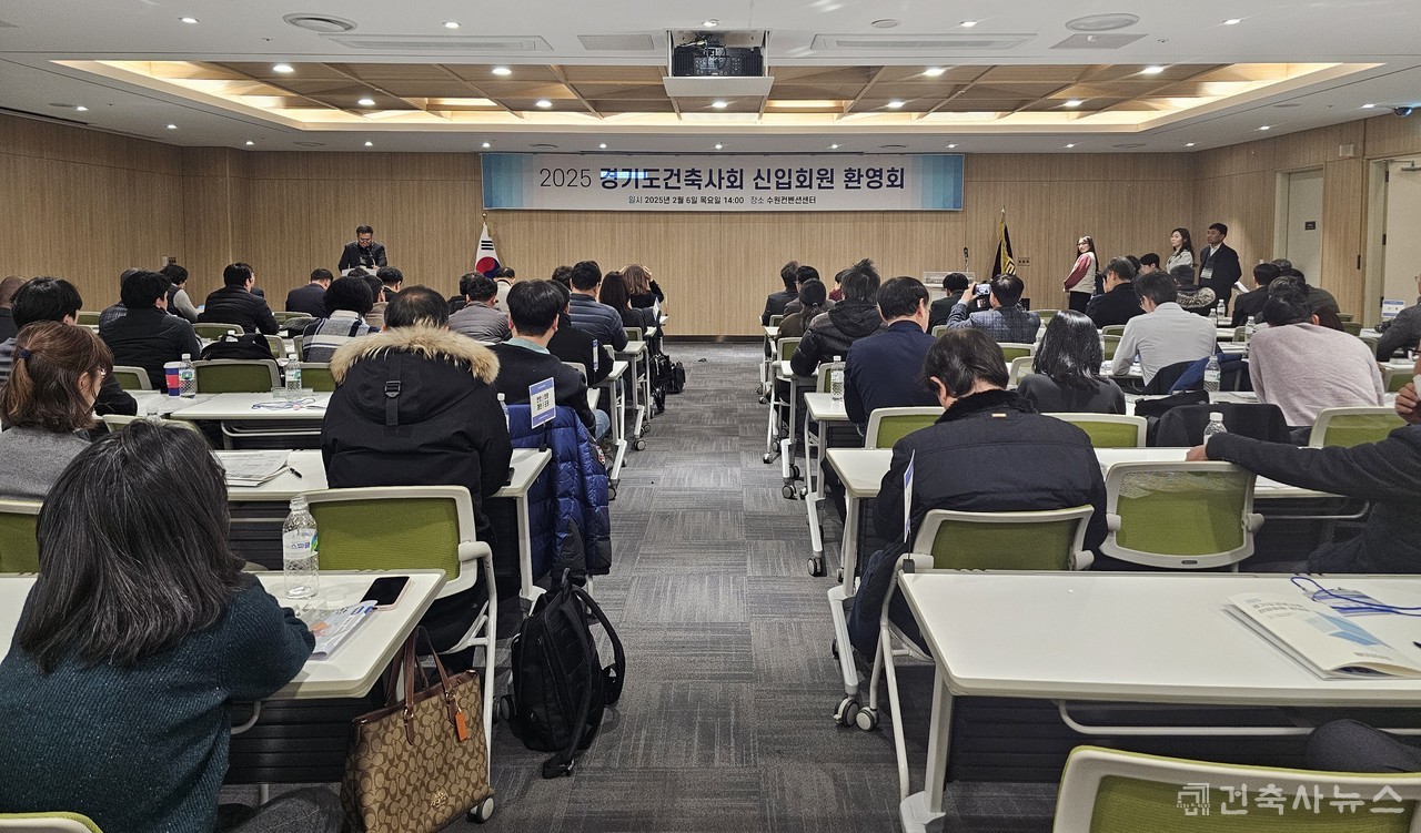 [2025 경기도건축사회 신입회원 환영회]가 2월 6일 수원컨벤션센터에서 열렸다. 이번 환영회는 2023년, 2024년 입회한 신입회원들을 대상으로 마련한 자리로 31개 시군에서 150여 명의 회원들이 참석했다. 경기도건축사회는 신입회원들을 환영하고, 각종 협회 활동에 적극적인 참여를 통해 많은 회원 간의 교류와 커뮤니티 형성에 도움이 되고자 매년 행사를 준비해오고 있다.