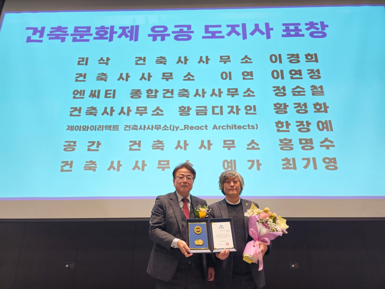공로회원 표창, 우수직원 표창, 건축문화 유공 도지사 표창 등을 수여하고, 임기 만료 임원 및 지역건축사회 회장단 공로패 전달했다.