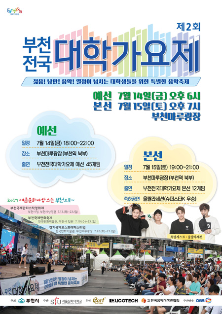 ‘제2회 부천전국대학가요제’가 오는 7월 14일과 15일 부천마루광장에서 열린다.