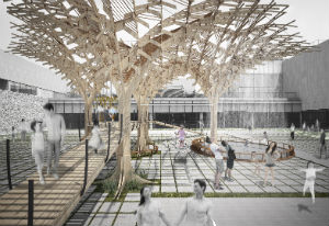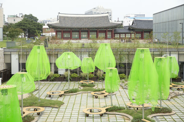 올해 서울관 마당에는 최종 우승 건축가로 선정된 ‘삶것(양수인)’의 <원심림(Centreefugal Park)>이 설치된다. 작가가 만들어낸 단어이자 작품 제목인‘원심림(Centreefugal Park)’은 숲을 의미하는 ‘원시림’과, 그 안에 자리하고 있는 나무들의 생장 동력인 ‘원심력(centrifugal)’을 합성한 것이다. 가볍고, 경제적인 건축에 대해 지속적으로 고민해 온 작가는 간단한 기계장치를 통해 나무와 비슷하게 생긴 모양의 ‘원심목’들로 이뤄진 하나의 숲, ‘원심림(Centreefugal Park)’을 미술관 마당에 조성하였다. 선선한 바람을 일으키는 원심목들, 그 아래 그늘을 찾아 움직일 수 있는 벤치들, 그리고 주변에 조성된 습지, 돌, 모래 정원은 관객들에게 한여름 색다른 경험을 제공해줄 것이다.