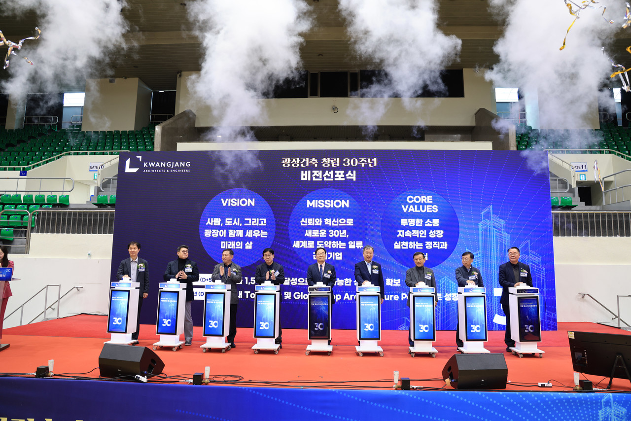 “30년의 신뢰, 새로운 30년의 세움”이라는 슬로건 아래 ㈜건축사사무소광장은 “사람, 도시, 그리고 광장이 함께 세우는 미래의 삶”이라는 비전을 제시했다.