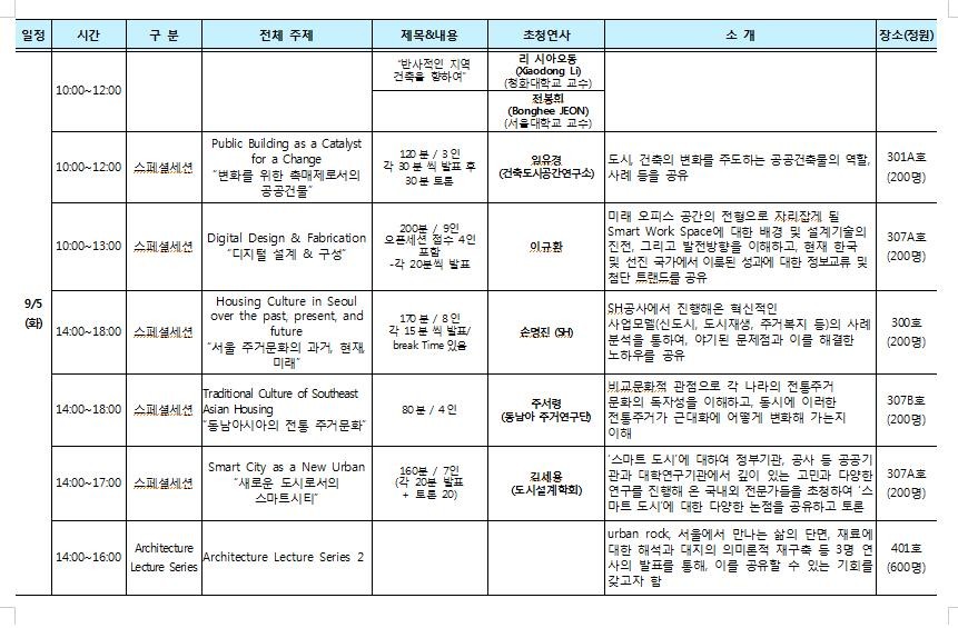 넷째. 다섯째. 강연을 위한 대회. 강연의 시간이 대부분 3시간을 상회한다.
