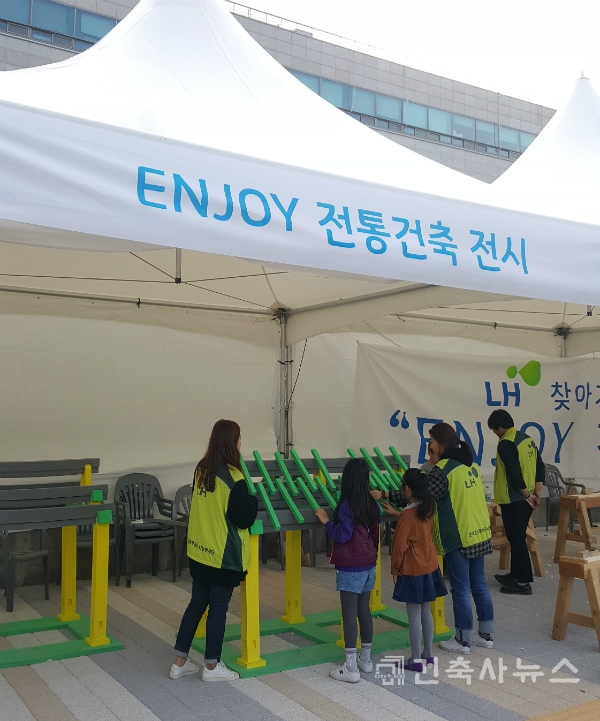ENJOY 전통건축 전시 체험부스에서는 전통건축 집짓기 체험, 대패체험, 팝업카드 &공포모형목걸이 만들기 등 사전접수 없이도 현장에서 참여할 수 있는 체험프로그램이 많아 어린이들의 사랑을 받았다.