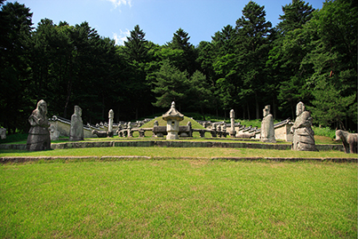 광릉은 조선 7대 세조와 정희왕후 윤씨의 능이다. 광릉은 같은 산줄기에 좌우 언덕을 달리하여 왕과 왕비를 각각 따로 모시고, 능 중간 지점에 하나의 정자각을 세우는 형식인 동원이강릉(同原異岡陵)의 형태로서, 이러한 형태의 능으로 최초로 조성되었다. 정자각 앞에서 바라보았을 때 왼쪽 언덕이 세조, 오른쪽 언덕이 정희왕후의 능이다. 세조는 “내가 죽으면 속히 썩어야 하니 석실과 석곽을 사용하지 말 것이며, 병풍석을 세우지 말라.”는 유명을 남겼다. 이러한 세조의 유언에 따라 이전까지 석실로 되어 있던 능을 회격(灰隔)으로 바꾸어 부역 인원을 반으로 줄이고 비용을 절감하였다. 봉분 주위에 둘렀던 병풍석을 생략하면서 병풍석에 새겼던 십이지신상은 난간석의 동자석주에 옮겨 새기는 등의 상설 제도를 개혁하였다.