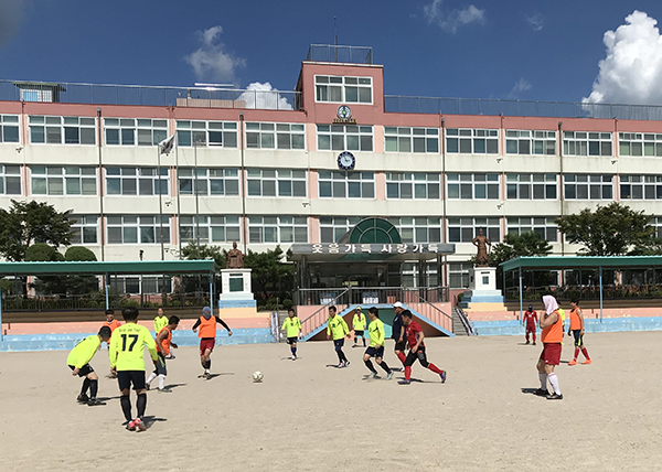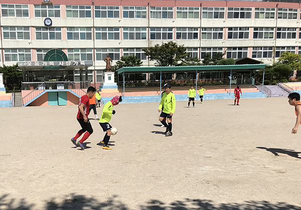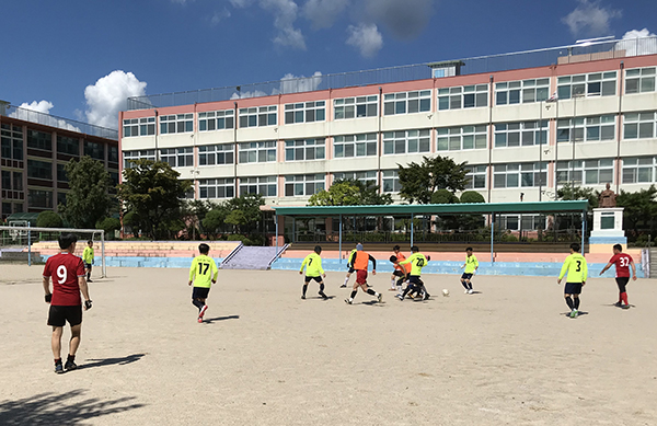 한 여름 햇살이 절정으로 뜨거운 2018년 8월 11일 오후, 성남 시내 위치한 성남제일초등학교 운동장을 찾았습니다. 운동장에는 어깨에 건축사협회 마크가 새겨진 유니폼을 입고 몸을 풀고 계시는 분들이 계셨습니다. 이들은 올해 7월 창단한 성남지역 건축사협회 산하 축구단으로 현 경기도 건축사협회 부회장이시며 전 성남지역 건축사 회장을 지내신 강근호 건축사님을 단장으로, 40여 명의 건축사들로 구성되어 있습니다.