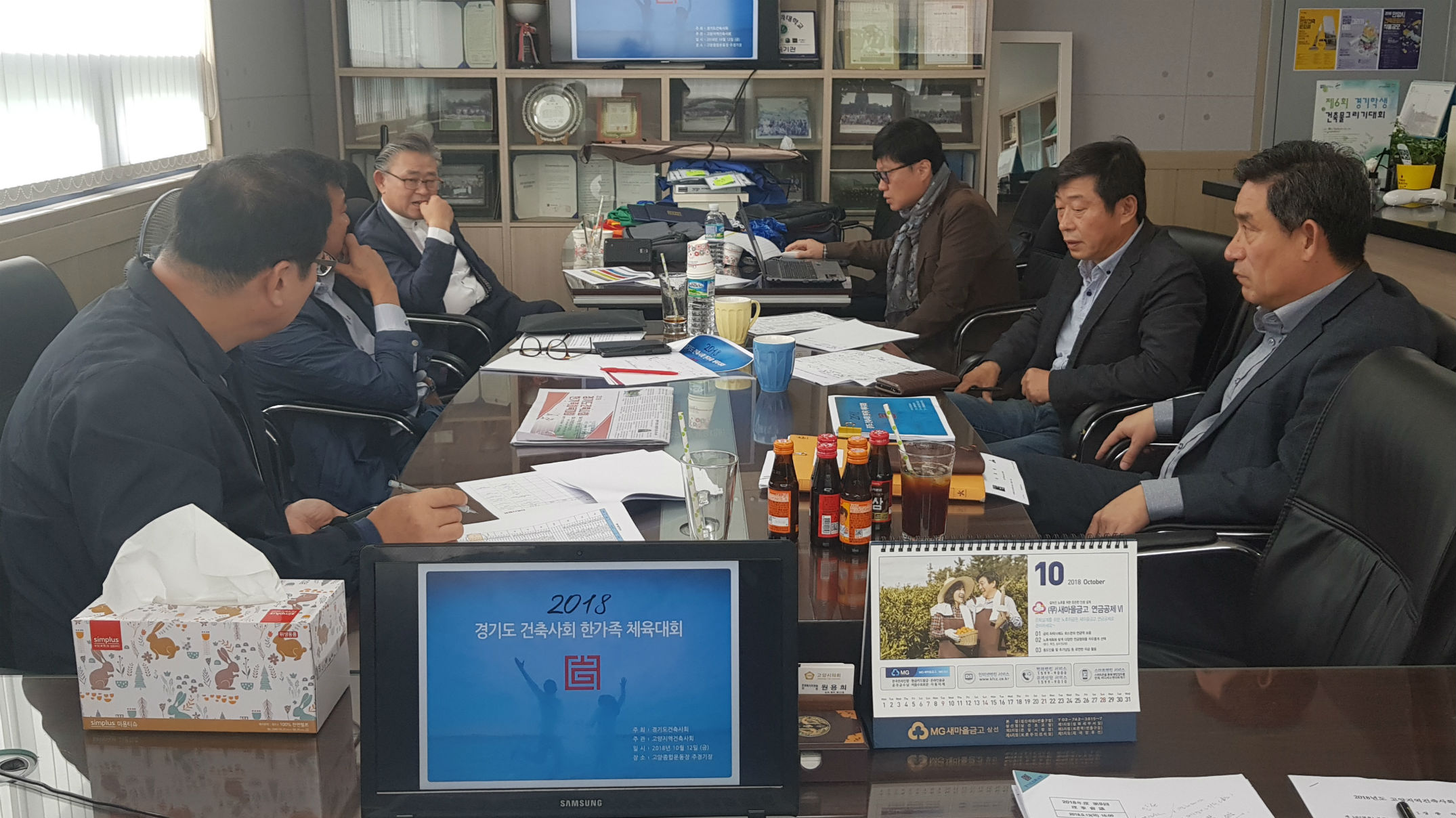 2018 경기도건축사회 한가족 체육대회 개최를 위한 준비위원회( 위원장: 이창구 고양지역 건축사회 회장 )와 이벤트 행사를 진행할 업체와의 최종 준비 상황을 점검하기 위한 회의가 8일 고양지역 건축사회에서 열렸다.
