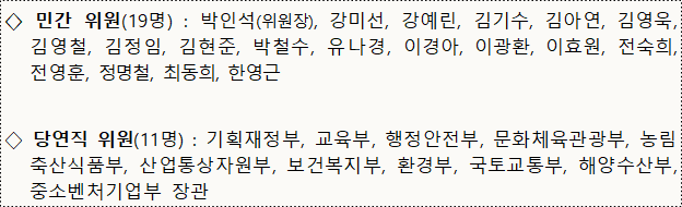 지역균형발전 및 양성평등 기조에 발맞추어 비수도권 전문가(7명 37% : 강원 1, 충청 2, 영남 2, 호남 2)와 여성위원(8명, 42%) 비율을 높이는 동시에 40대 젊은 인사(8명, 42%)의 위촉을 배려하였다.