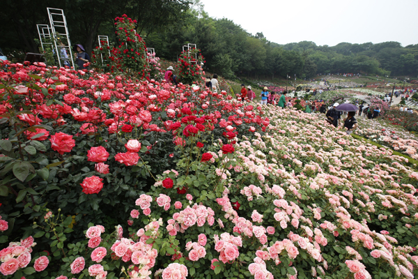 시는 공공근로사업의 일환으로 지난 1999년~2001년 도당공원 안에 1만4270㎡ 규모의 백만송이장미원을 만들었다.