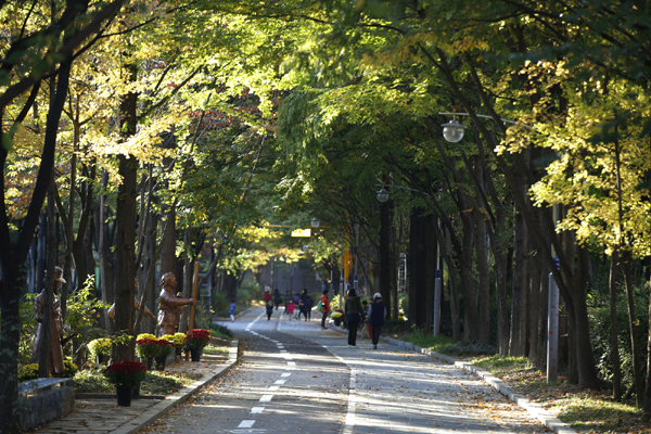 부천의 아파트 산책로가 유명 만화작가의 작품을 감상할 수 있는 특색 있는 테마거리로 탈바꿈했다.