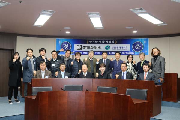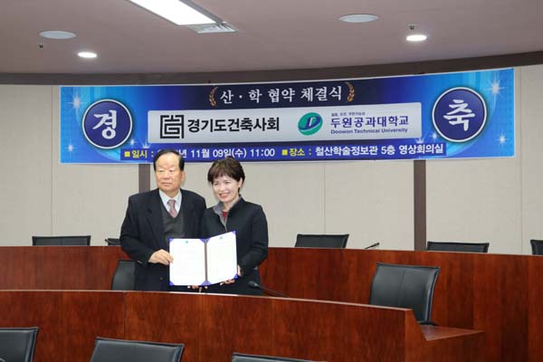 경기도 건축사회는 지난 산학협력 활성화를 위한 워크숍 이후 11월 9일 두원공과대학교와 MOU를 체결하였다.